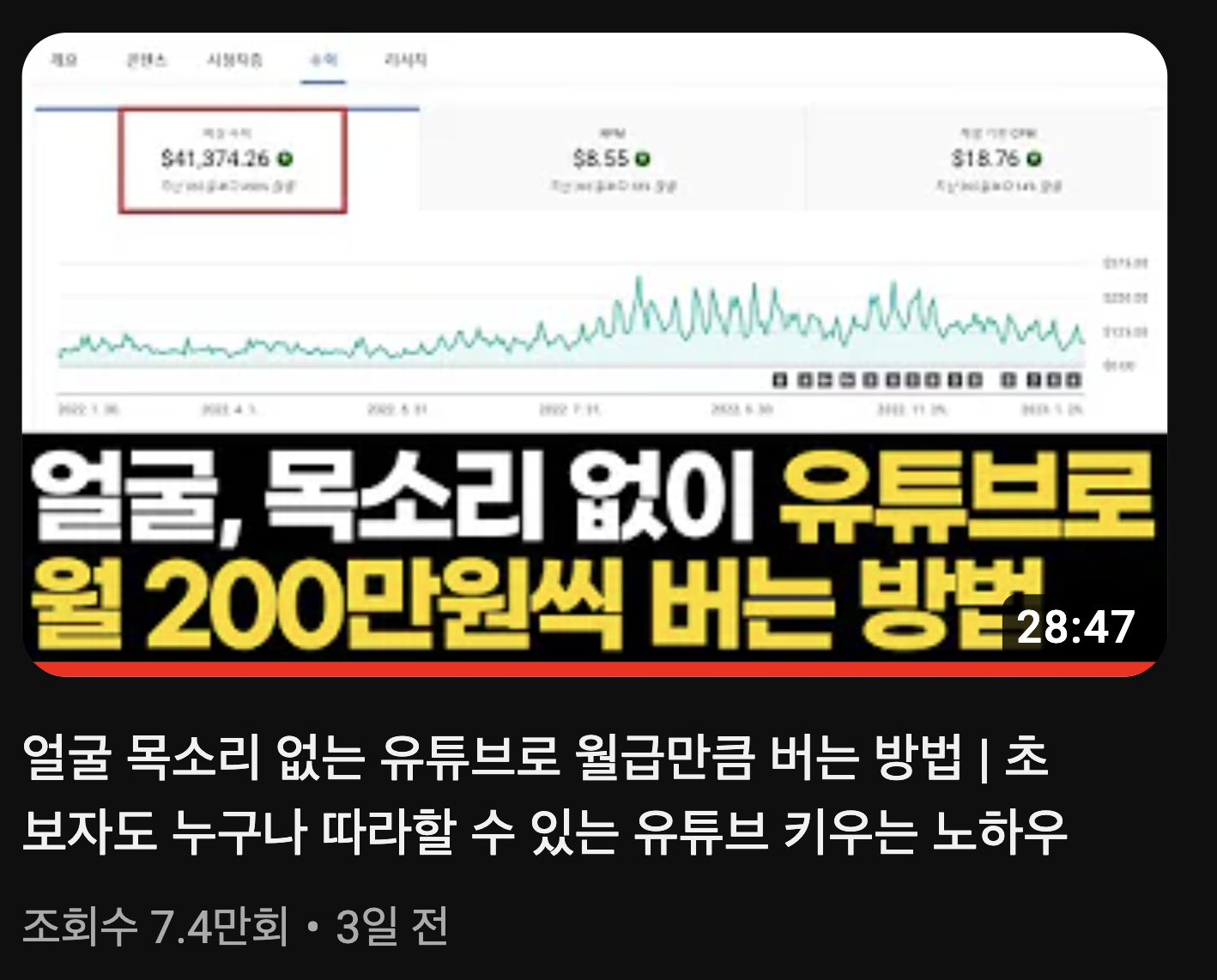 - 평균 조회수가 높은 영상들을 똑같이, 거의 복사 붙여넣기 식으로 만들면 된다